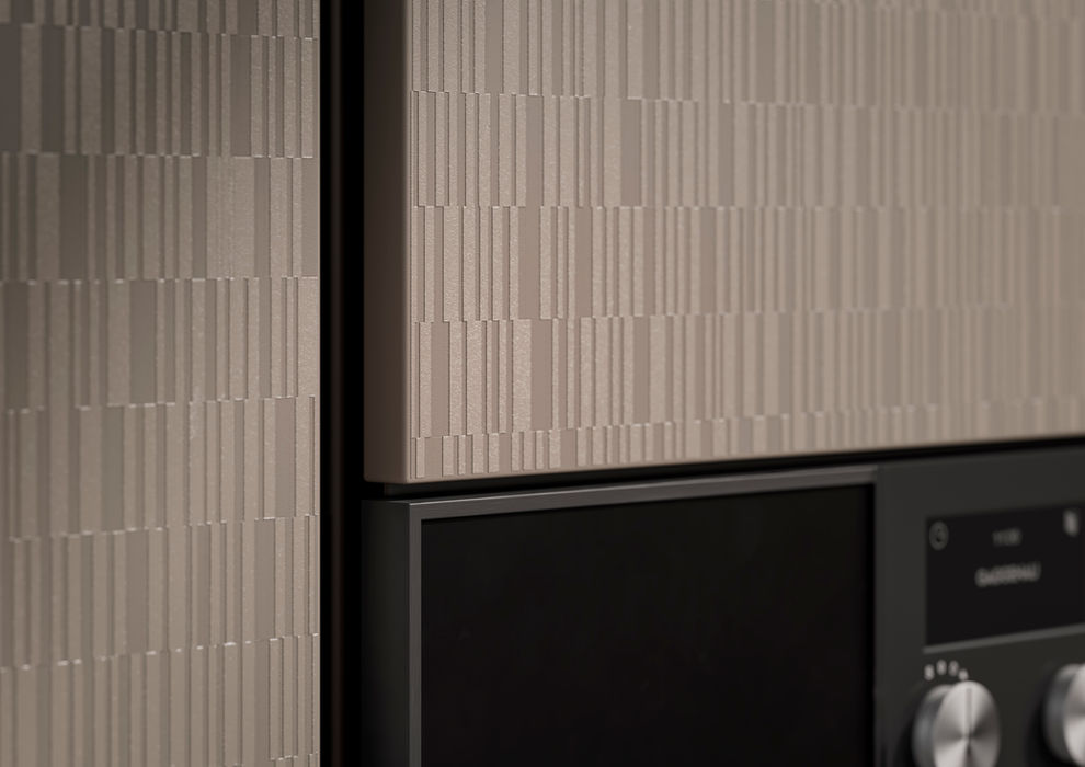 LEICHT's GEO surface, inspired by urban architecture, introduces a modern, dynamic look to your kitchen. Its unique three-dimensional relief structure adds texture and depth, while the contrast of matte and glossy finishes creates a striking visual effect that shifts with changing light.
